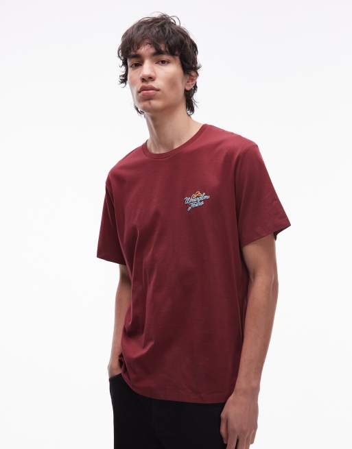 Wrangler - T-shirt met geschreven logo in bordeauxrood