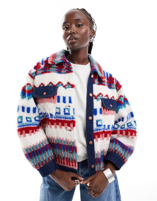 Wrangler - Truckerjack van borg met print in multi