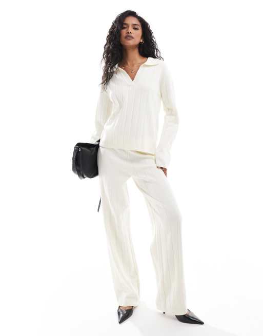 Y.A.S - Breed geribbeld gebreide co-ord set van top en broek in crème