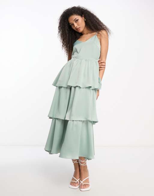 Y.A.S - Bruidsmeisjes - Gelaagde midi-jurk met bandjes in saliegroen