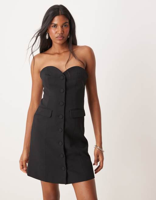 YAS - Elegante mini-smokingjurk met knopen aan de voorkant in zwart