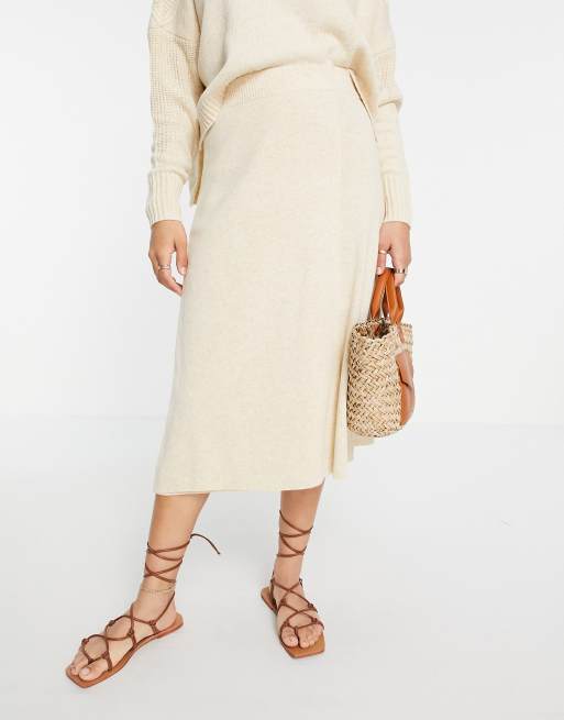 Y.A.S - Gebreide midi rok met overslag aan de voorkant in crème, deel van co-ord set