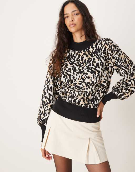 YAS - Hoogsluitende trui met pofmouwen in luipaardprint