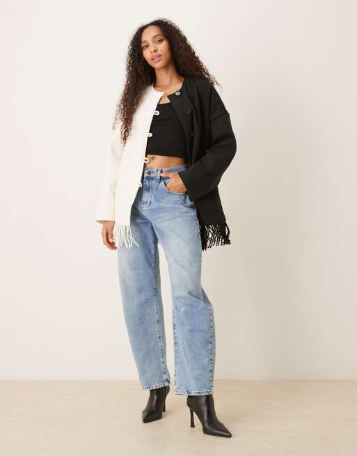YAS - Jack met contrast en franjes aan de zoom in zwart en crème
