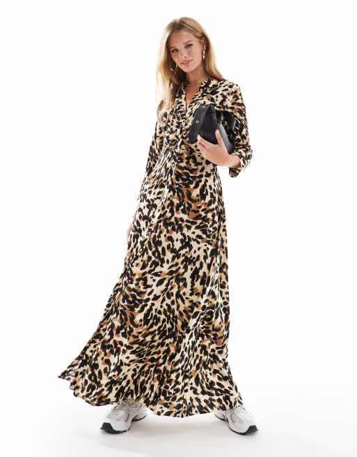 YAS - Maxi overhemdjurk in zwarte luipaardprint