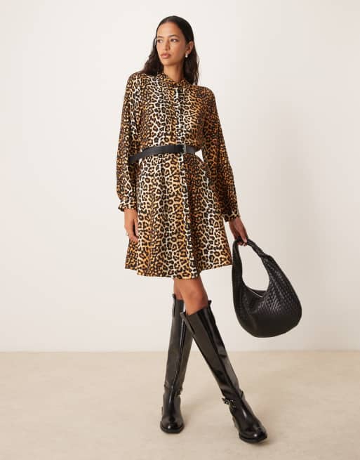 YAS - Mini overhemdjurk met zwierige zoom in luipaardprint