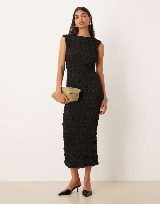YAS - Mouwloze maxi jurk met 3D textuur in zwart