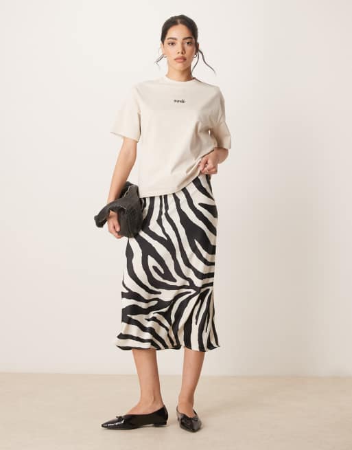 YAS - Satijnen midi-rok in zebraprint