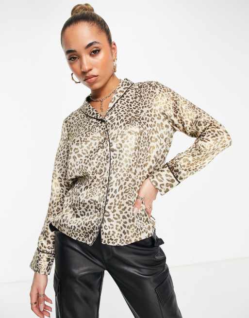 Y.A.S - Satijnen overhemd met luipaardprint, deel van co-ord set