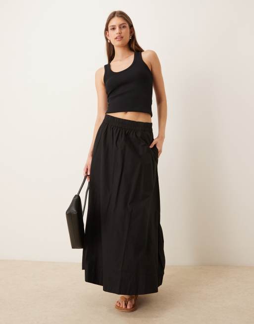 YAS - Volumineuze maxi rok van katoenen poplin in zwart