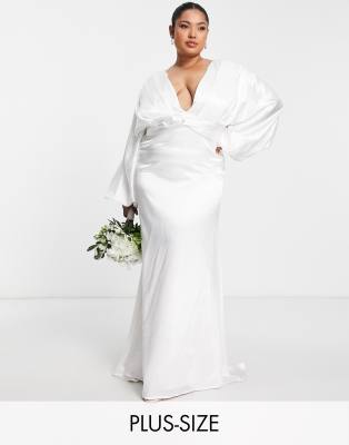 Yaura - Plus - Bruidskleding - Maxi-jurk met kimonomouwen in ivoor