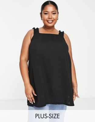 Yours - Camitop met gesmokte bandjes in zwart