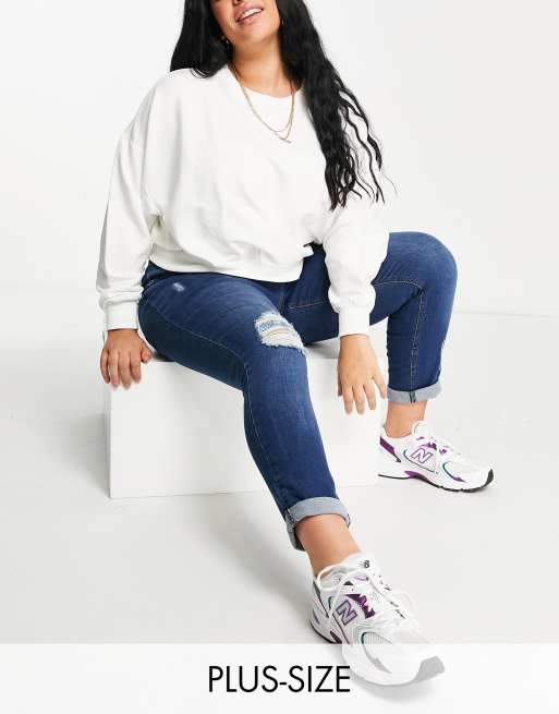 Yours - Gescheurde mom jeans in donkerblauwe wassing