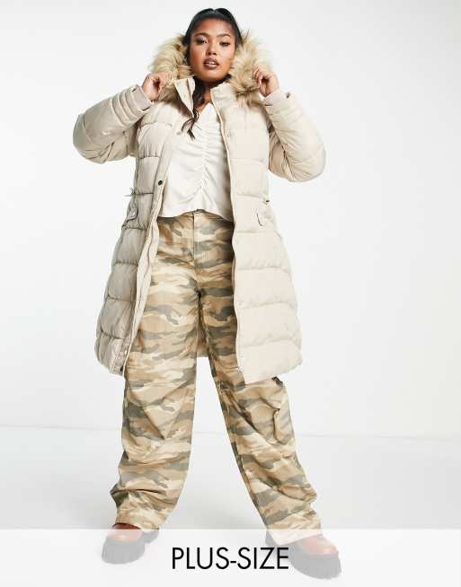 Yours - Gewatteerde jas met panelen en capuchon met imitatiebont in neutraal