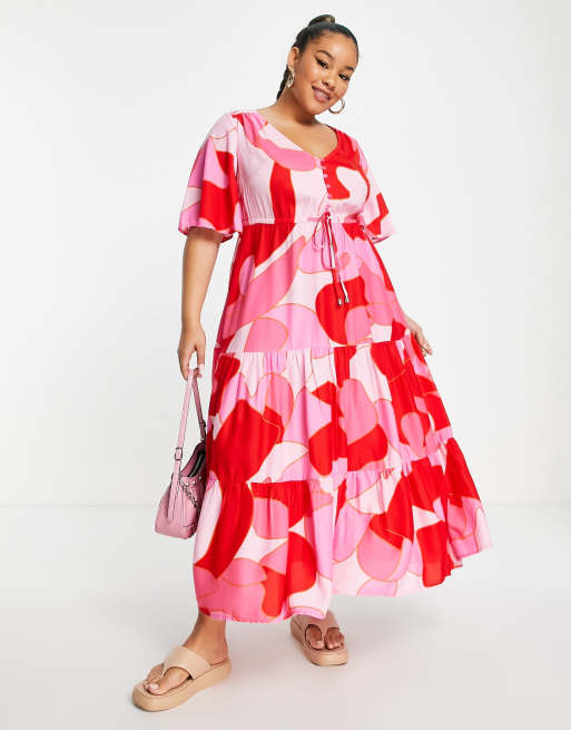 Yours - Maxi jurk met gestrikte voorkant in roze met abstracte print