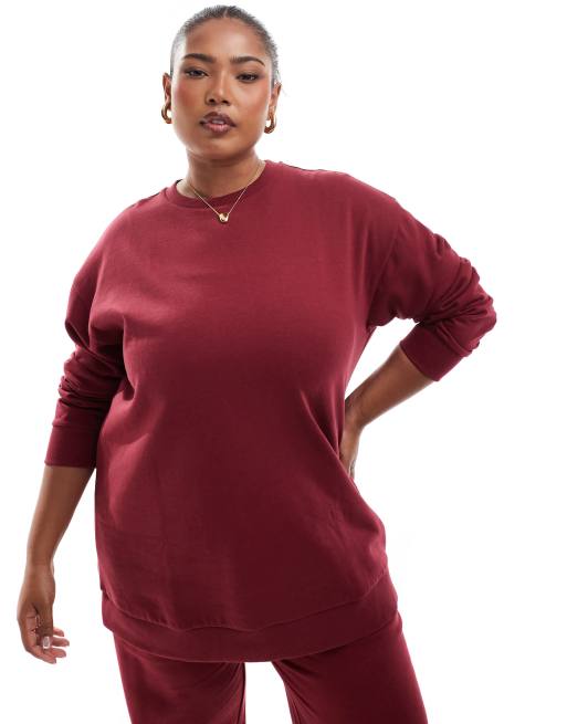 Yours - Sweatshirt met ronde hals in bordeauxrood, deel van co-ord set