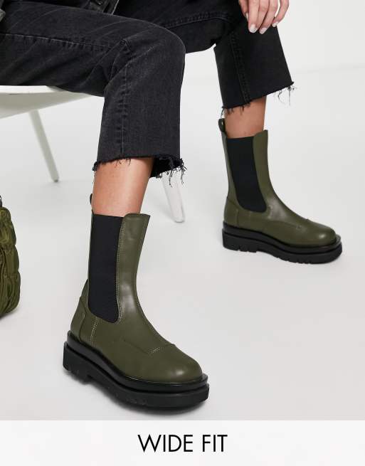 Z_Code_Z - Nora - Chelsea boots met dikke zool en brede pasvorm in olijfgroen