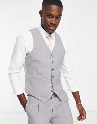 Noak premium wool-rich skinny suit waistcoat in ice grey