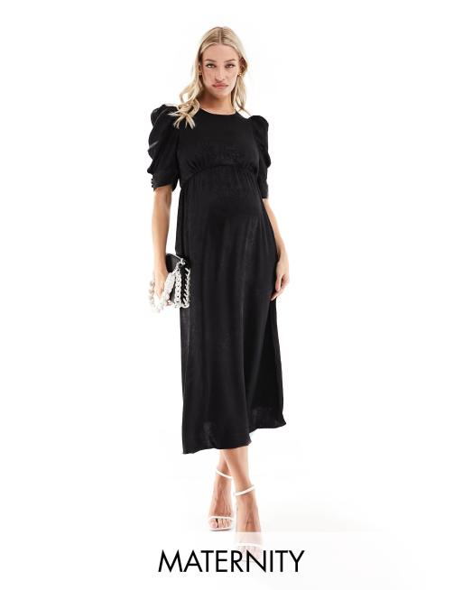 Nobody's Child Maternity satin jacquard maxi dress with puff sleeves in black