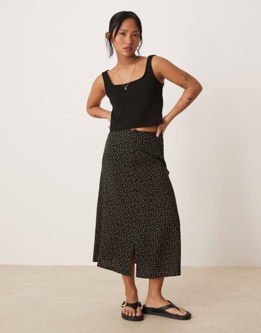 Nobody's Child Petite button front midi skirt in black ditsy floral