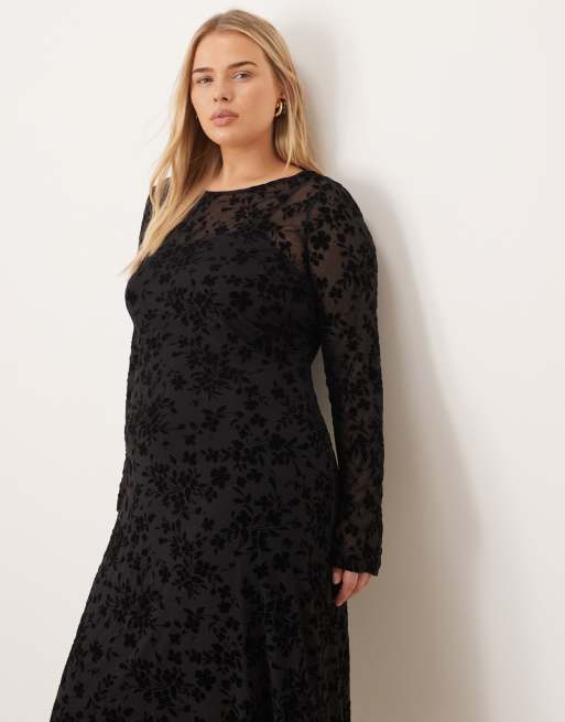 Nobody's Child Plus Clarissa devore velvet midi dress in black