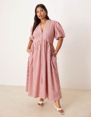 Nobody's Child Plus Starlight puff sleeve midi dress in pink stripe
