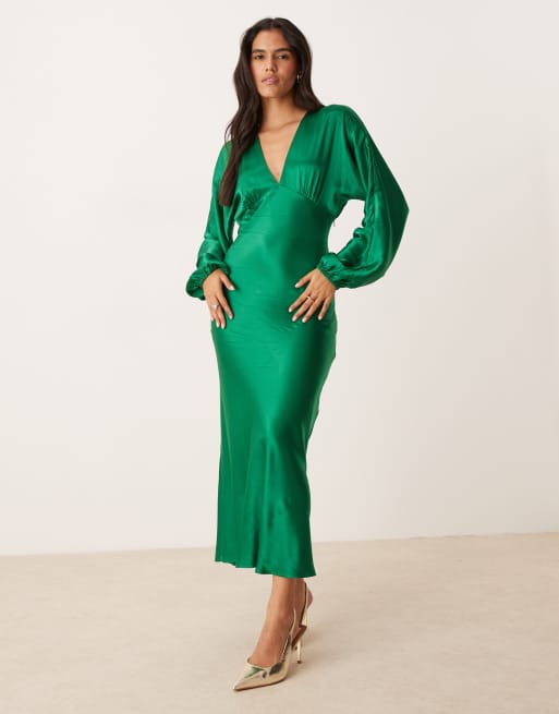 Nobody's Child Allura balloon sleeve v-neck midi dress in green