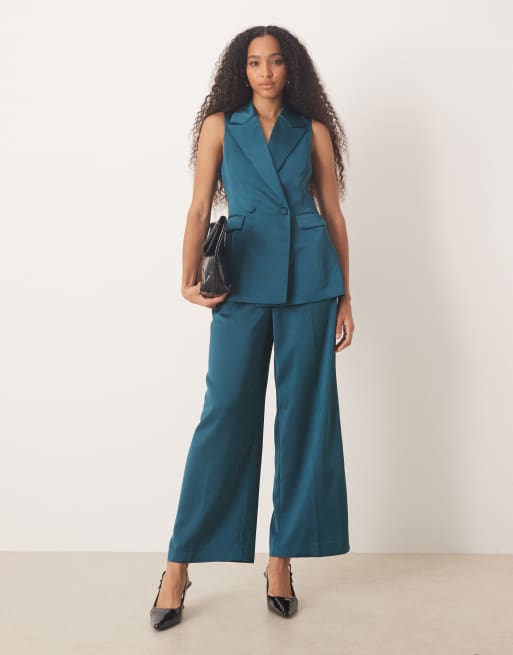Nobody's Child Arlo satin sleeveless blazer co-ord in dark green