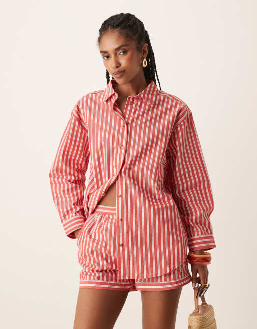 Nobody's Child Cindy relaxed shirt co-ord in red stripe