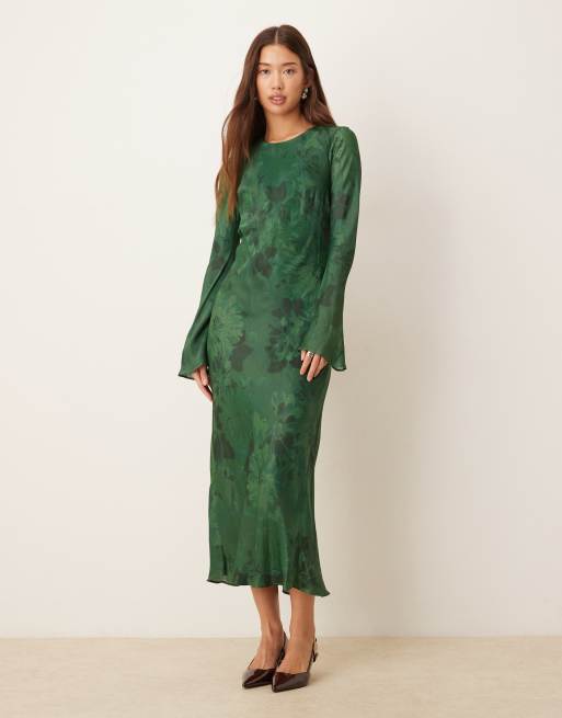 Nobody's Child Clarissa jacquard floral bell sleeve midi dress in dark green