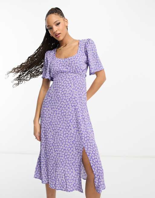 Nobody's Child Dee Dee split midi dress in blue ditsy floral