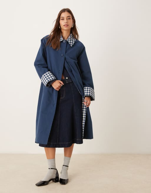 Nobody's Child Diola car coat with contrast check in navy