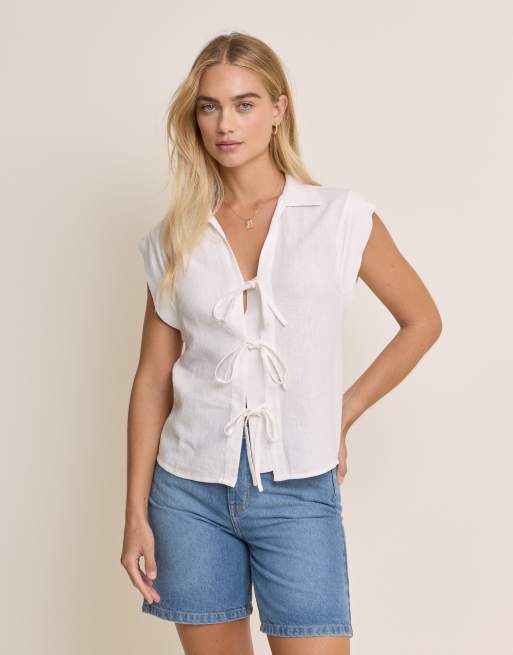 Nobody's Child Ember linen blend collar detail tie front top in white