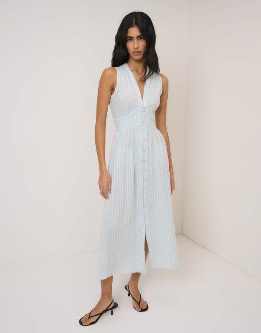 Nobody's Child Gingham sleeveless starlight midi dress in blue