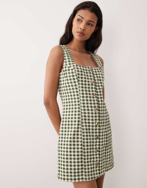 Nobody's Child Harvey button down mini dress in green gingham
