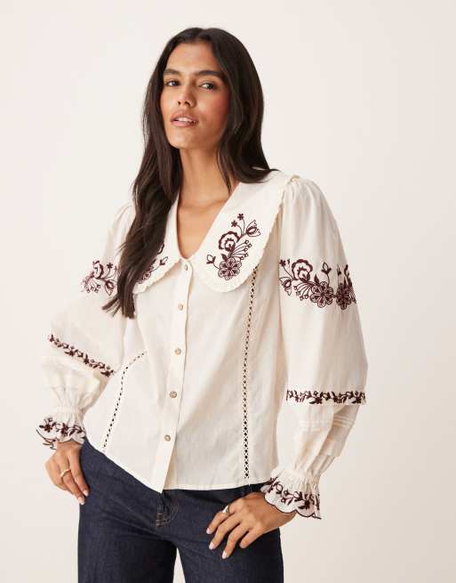 Nobody's Child Henrietta embroidered shirt in ivory