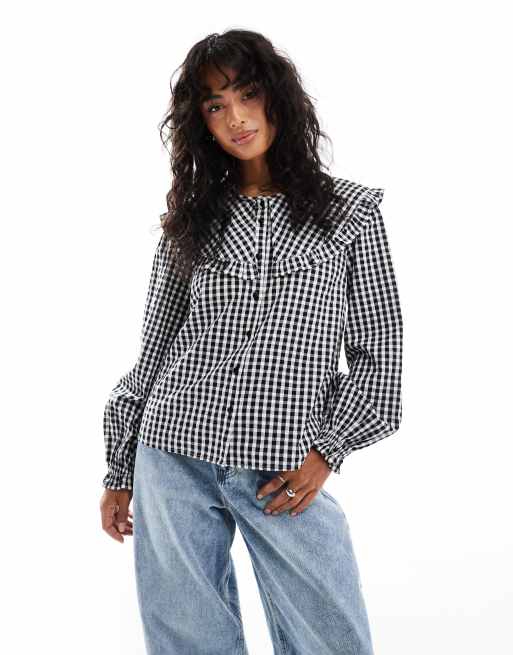 Nobody's Child Jennifer blouse with exaggerated collar in gingham