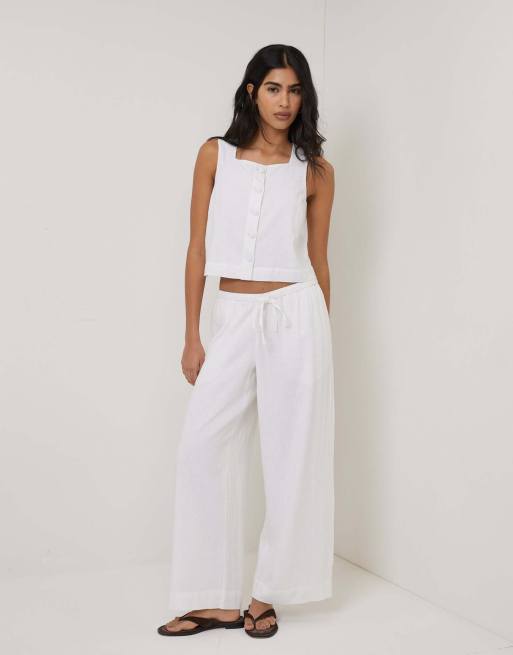 Nobody's Child Linen-blend button front top in white