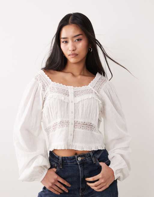 Nobody's Child Lola top with lace insert in white co ord