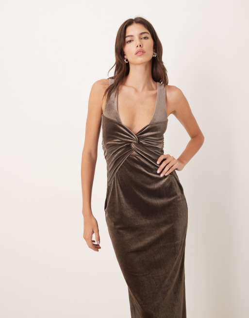 Nobody's Child Margot velvet backless midi dress in brown