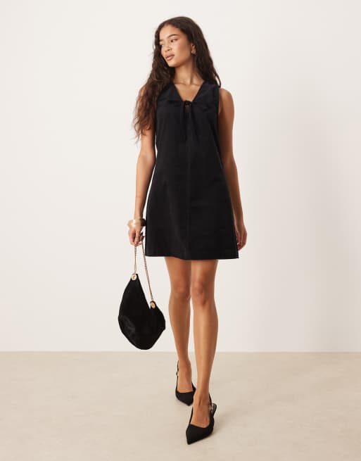 Nobody's Child Nila tie-detail cord pinafore mini dress in black