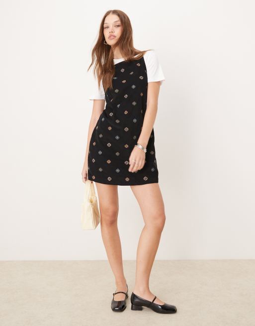 Nobody's Child Pepper Pinny mini with embriodery in black