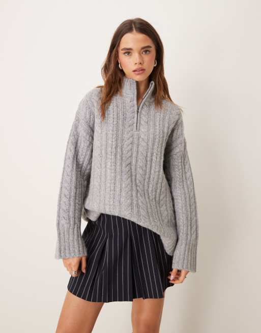 Nobody's Child premium half zip cable knit wool jumper in grey