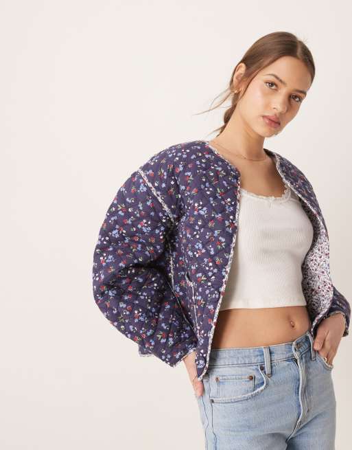 Nobody's Child reversible quilted jacket in cream ditsy