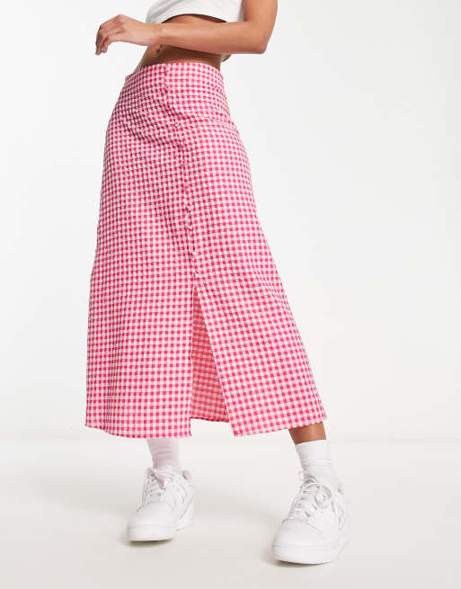 Nobody's Child Sadie midi skirt in pink and red gingham