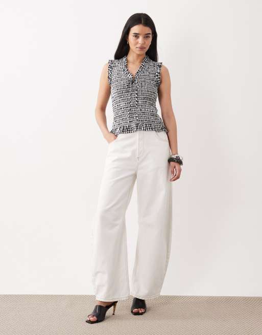 Nobody's Child shirred top in black and white gingham