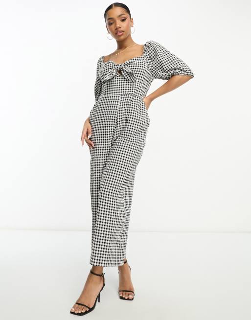 Nobody's Child Simone puff sleeve jumpsuit in mono gingham