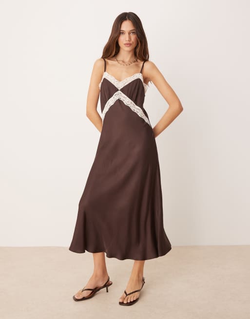 Nobody's Child Solene lace trim maxi dress in chocolate and cream