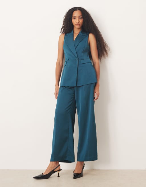 Nobody's Child Sorley satin wide leg trousers co-ord in dark green