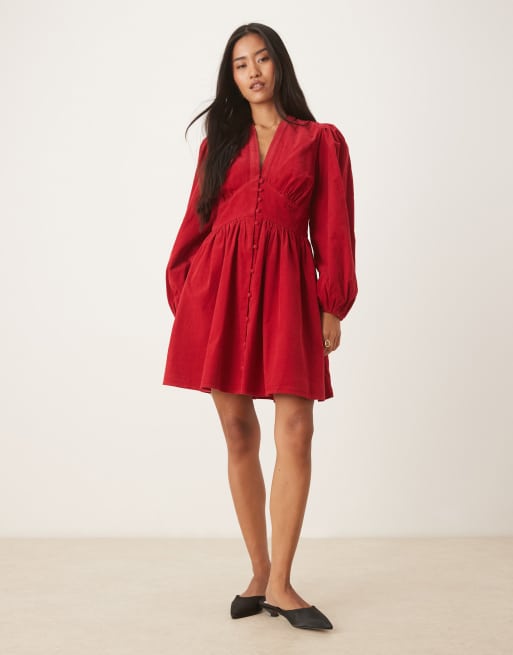 Nobody's Child Starlight cord long sleeve mini dress in red